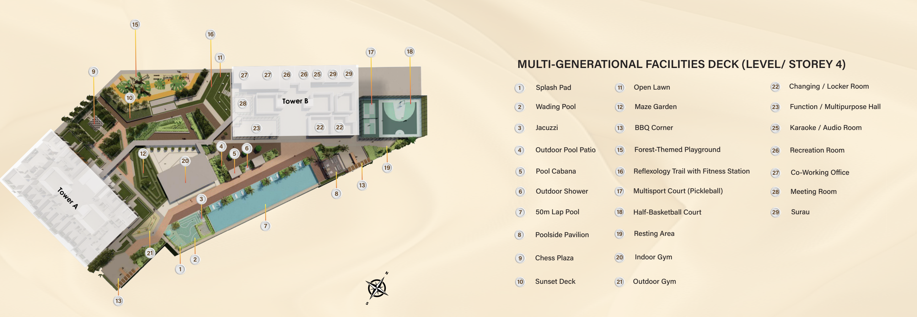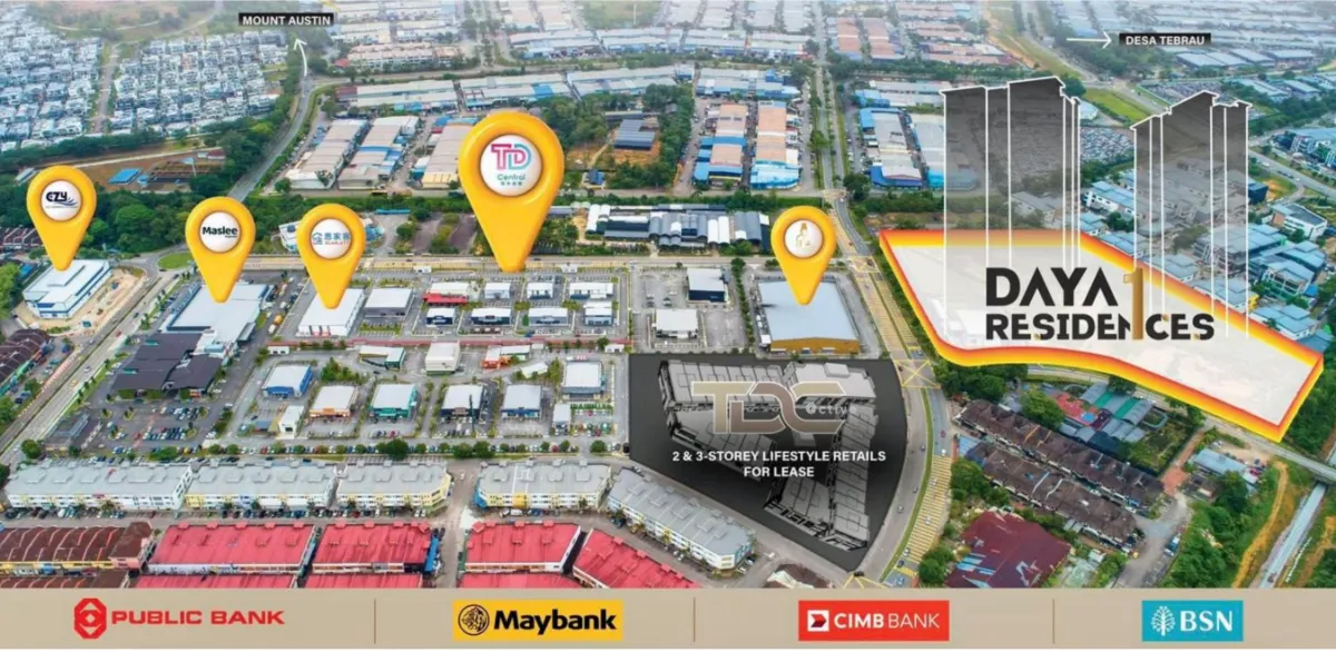 Nestled next to TD Central in vibrant Taman Daya, Daya 1 Residences offers a pioneering approach to urban high-rise living. Designed with modern flexibility in mind, it features a multi-generational facility deck complete with an indoor and outdoor gymnasium, a 50 m lap pool, splash pad, wading pool, jacuzzi, poolside cabana, and pavilion. Additional highlights include a forest-themed playground, reflexology trail, fitness station, maze garden, chess plaza, co‑working spaces, half basketball and pickleball courts, barbecue corners, and more—all within a secure, low-density environment with EV charging and tiered security.